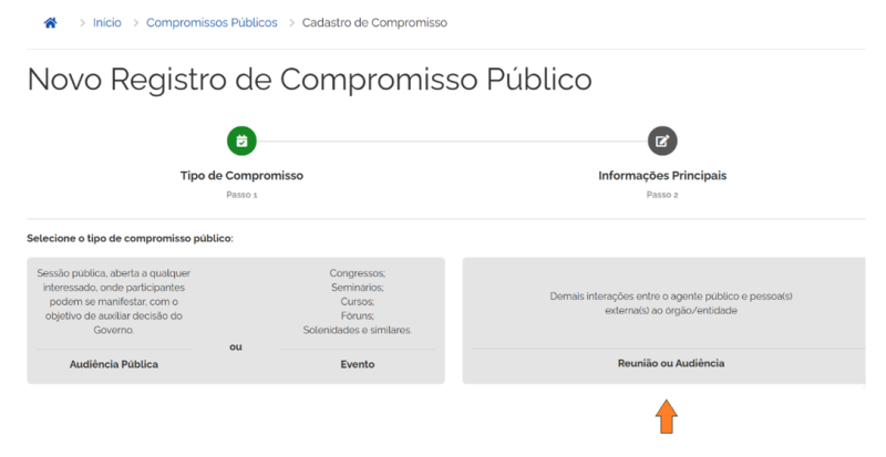 Seleção do Tipo de Compromisso Reunião/Audiência