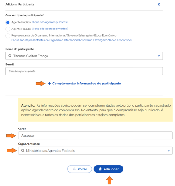 Complementando Informações do agente público