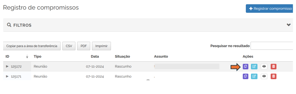 Clique em uma data/horário para ver como o arquivo estava em um dado momento.